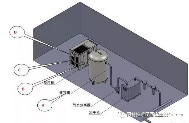 A)配套設(shè)備安裝順序要求如圖,“空壓機→儲氣罐→氣水分離器→冷干機”的安裝順序能有效利用氣體流動特性提前排出水分降低冷干機負(fù)荷。