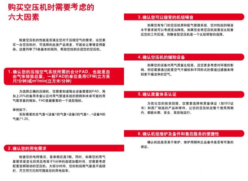 上海統(tǒng)將專(zhuān)業(yè)的工程師就從六大因素介紹下空壓機(jī)選購(gòu)的基本要素,給企業(yè)用戶提供一些參考。